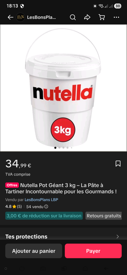 Si vous côtoyez des plus jeunes, n'hésitez pas à leur faire prendre conscience qu'acheter un pot de Nutella de 3Kgs à 35 Euros c'est une arnaque. Par exemple nous l'achetons dans notre hyper préféré à 5 Euros le kilo. Le kilo de pâtes Panzani à 3 Euros sur Tiktok est aussi une arnaque. En faisant l'effort de comparer les prix et en vous déplaçant dans votre magasin préféré, vous ferez des économies et serez certains d'avoir un produit non contrefait. Le numérique c'est bien, mais pas pour faire tout et n'importe quoi. Les smartphones et les ordinateurs sont des outils pour nous aider, pas pour remplacer le bon sens, même si on tente de nous faire croire le contraire avec l'IA. |