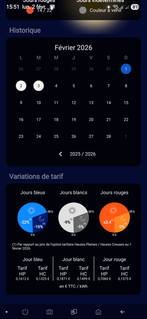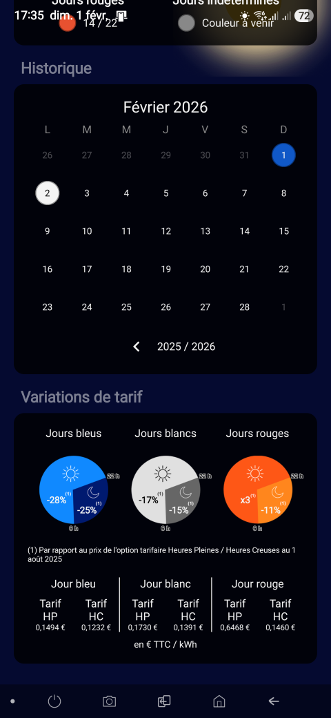Pour rappel, le logiciel illustrant cette info et que nous utilisons est "Tempo EDF : Bleu, Blanc, Rouge" qui est disponible aussi bien sur Android que sur iOS. |  |