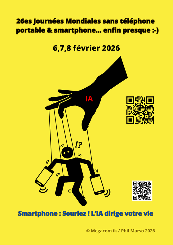 Si vous désirez en savoir plus sur cet événement "Made in France" qui est devenu aujourd'hui devenu mondial, n'hésitez pas à vous rendre sur le site officiel proposé par le créateur de ces journées de détox. Pour les plus intégristes qui râlent tout le temps, n'oubliez pas de garder à l'esprit que Phil Marso n’a jamais proposé de couper complètement son smartphone pendant ces trois jours. Ce rendez-vous annuel est pour lui, juste un prétexte à un débat de réflexion autour de ce merveilleux outil de communication. Néanmoins vous pouvez faire un test d'addiction : Coupez 1h, 3h, 12h ou plus ... à vous de voir ...